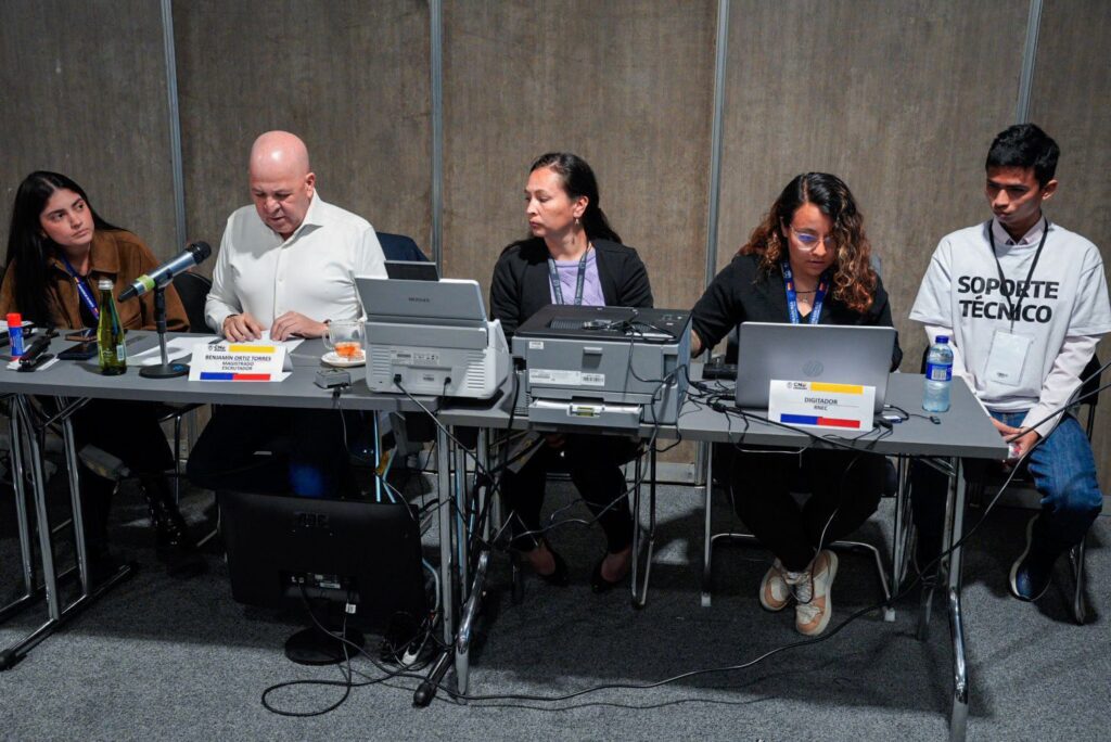 La Subcomisión 1 del Consejo Nacional Electoral adelanta la audiencia de escrutinios correspondiente a las votaciones registradas en Washington, Boston y Uruguay, como parte de la consolidación de los resultados de los colombianos en el exterior.