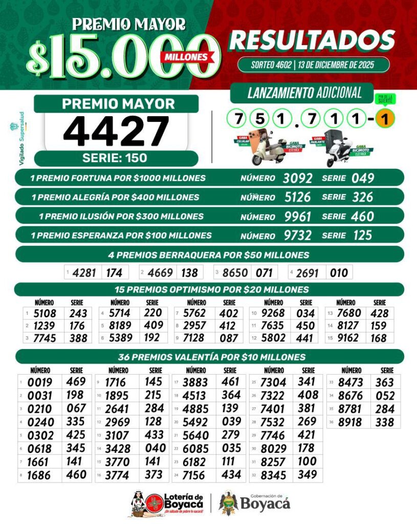 ✨ 🏆 Premio Mayor: 4427 – Serie 150, Revisa si eres el afortunado ganador de 15 mil millones 💸💚 también felicidades a los ganadores de aproximaciones 💥